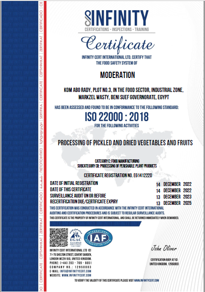 تعمل منشأتنا بما يتوافق بشكل كامل مع معايير ISO 22000:2018،